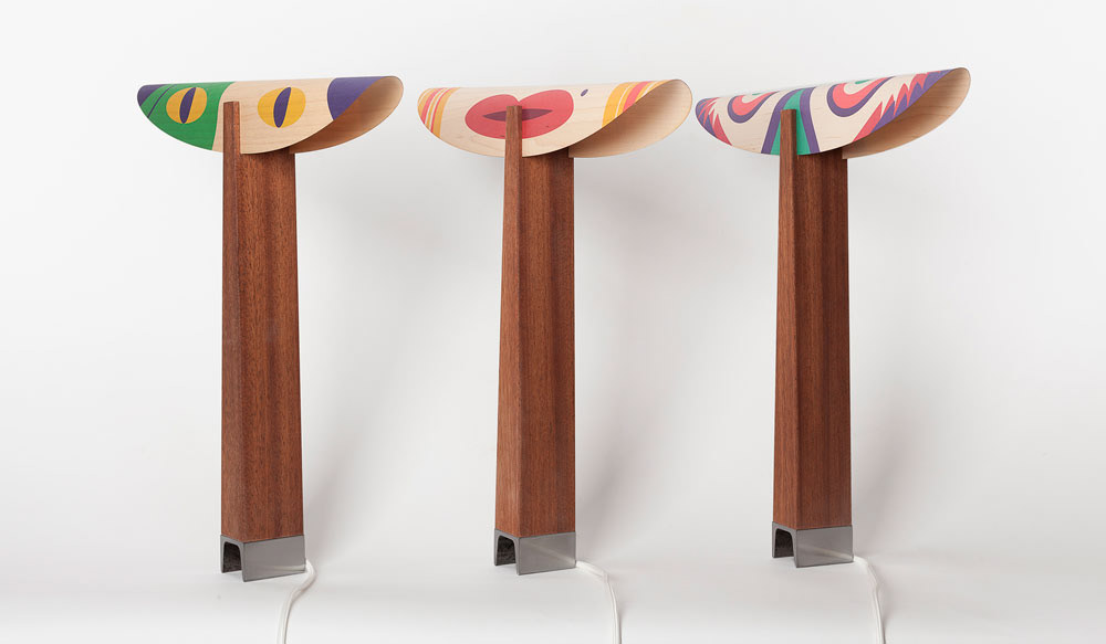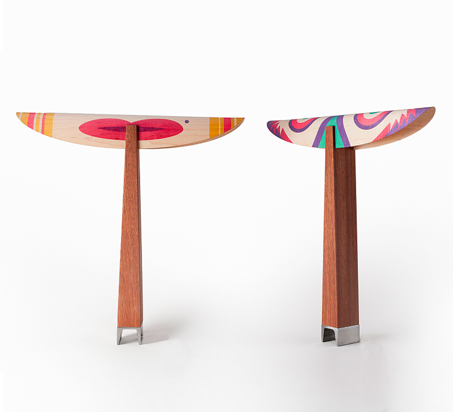 Materials: Mahogani wood, Digital printing on Mapel veneer, Iron.